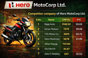 Hero MotoCorp की तुलना में कुछ प्रमुख कंपनियाँ हैं: